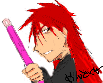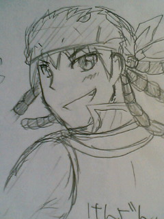資料見ながら描いた一品なんですが、イメージがより高い位置にいる為か好きなキャラほど上手く描けない代表みたいな子。(十代は比較的アッサリ描けるのに)っつうかどういう髪型だこの子・・・;;